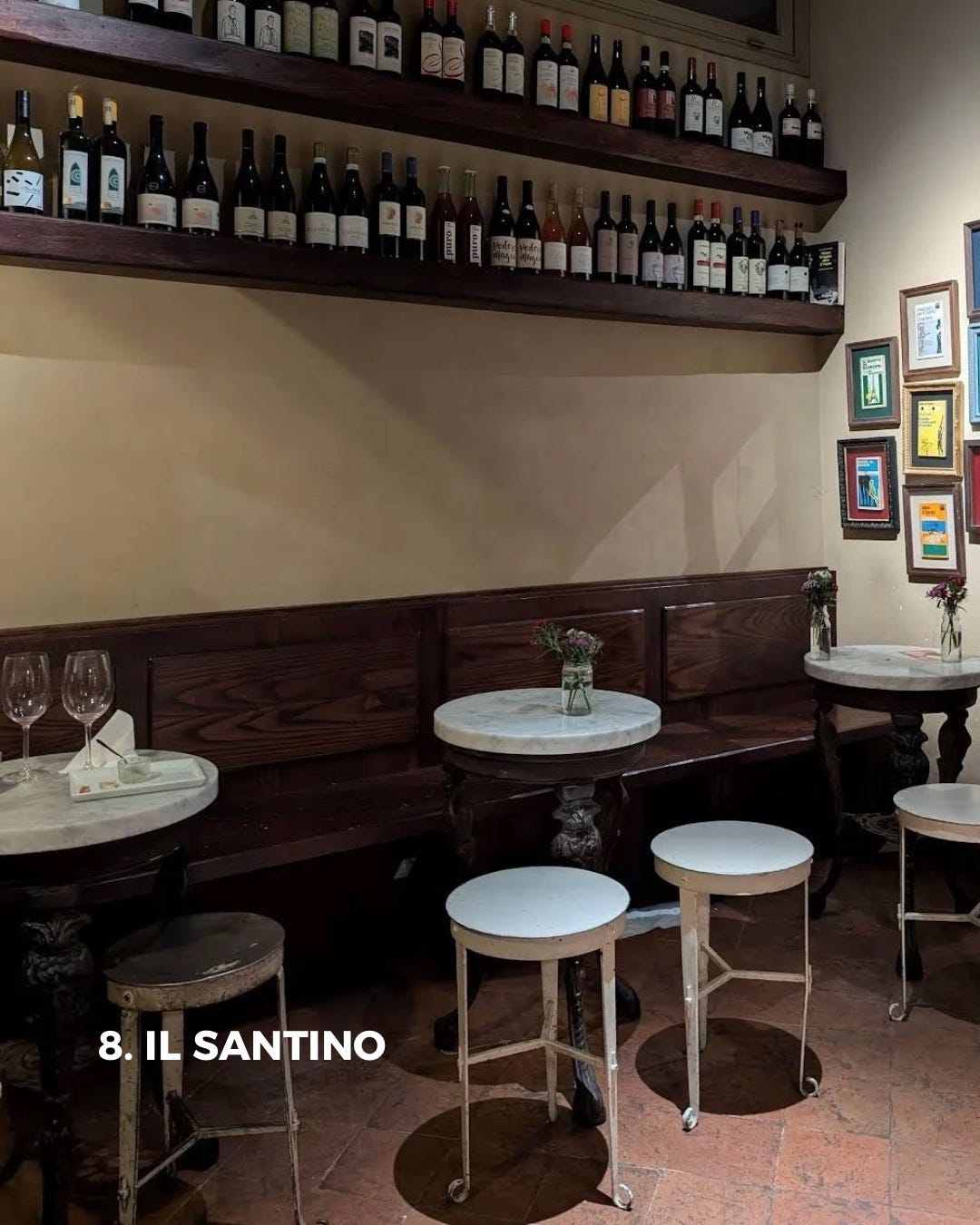 The hottest wine bar in Florence with the coolest crowd. A compact, perfectly curated wine list and outstanding small plates. Ideal for aperitivo or a late evening glass. Il Santino is part of the same family as trattoria Il Santo Bevitore and Sforno Bakery, three addresses that together cover every moment of the day with the same considered approach. Graphically their website is also worth a visit in itself —ilsantobevitore.com :)