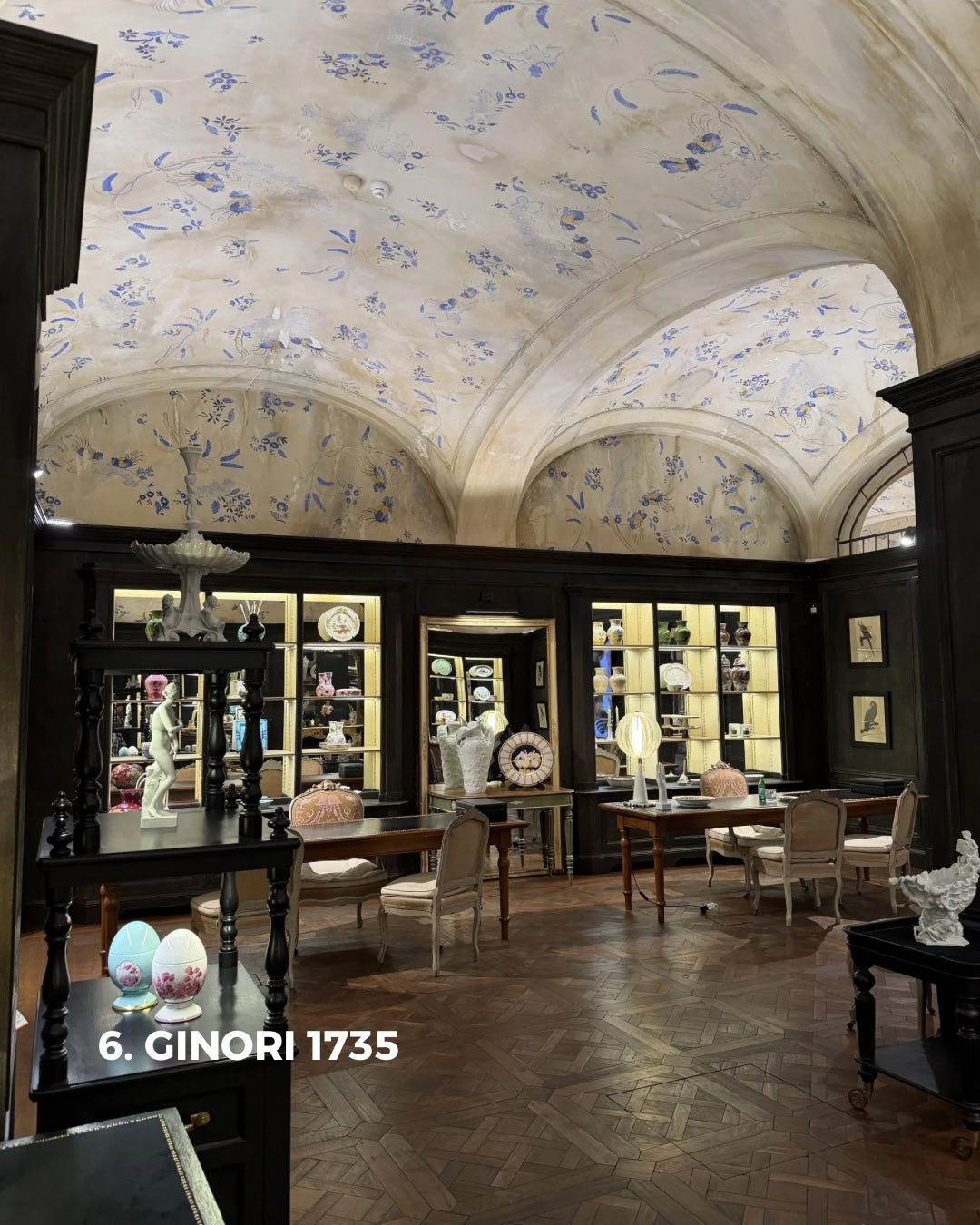 The Ginori 1735 flagship boutique is not a shop in the ordinary sense. Founded in 1735 in Doccia, just outside Florence, it is one of the oldest porcelain manufacturers in Europe. The tableware, the vases, the archive pieces reissued in new colourways all presented in the most beautiful possible way.