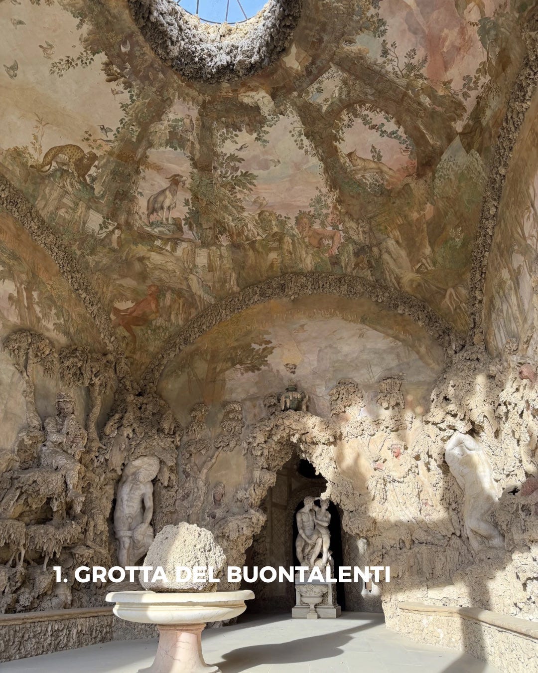 Tucked into the Boboli Gardens behind Palazzo Pitti, the Grotta del Buontalenti, completed between 1583 and 1593, is one of the most beautiful spaces the Mannerist imagination ever produced. The same restless creative mind of Bernardo Buontalenti that conceived this grotto is also credited with inventing gelato. The interior drips with artificial stalactites, embedded shells, and frescoed figures half-emerging from the walls as though the stone itself were alive. A masterpiece that most visitors to the Boboli walk straight past.