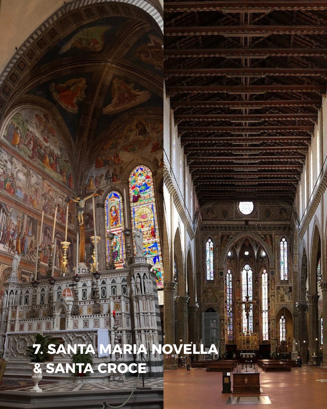 What I appreciate most about Santa Maria Novella is that the interior is not overloaded with frescoes, which brings full attention to the mastery of those present in the chapels and choir. The façade is one of the earliest examples of mathematical proportion applied to architecture, and the cloister is one of those quietly beautiful spaces that makes you want to stroll around. Inside, among others, you can find Masaccio’s Trinity, Ghirlandaio’s frescoed choir, and Brunelleschi’s wooden crucifix.