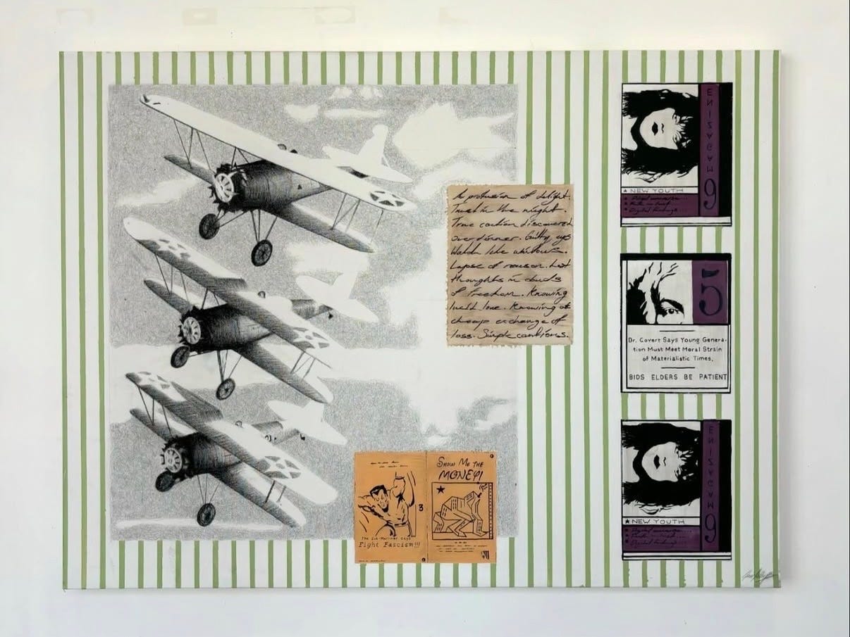 Galerie On Sunset is conceived as a late-night hangout and dining spot which also hosts regular DJs, jazz nights, and rotating art exhibitions curated by Tyler Santangelo of ALLGORITHIM, expanding how and where art is experienced. The works displayed were by Los Angeles–based artist Samual Elliot Phillips, whose collaged compositions draw on archival imagery, print culture, and fragments of text. His pieces introduce a visual counterbalance, which works because they bring a sense of lightness and graphic clarity to the room’s heavier materials.